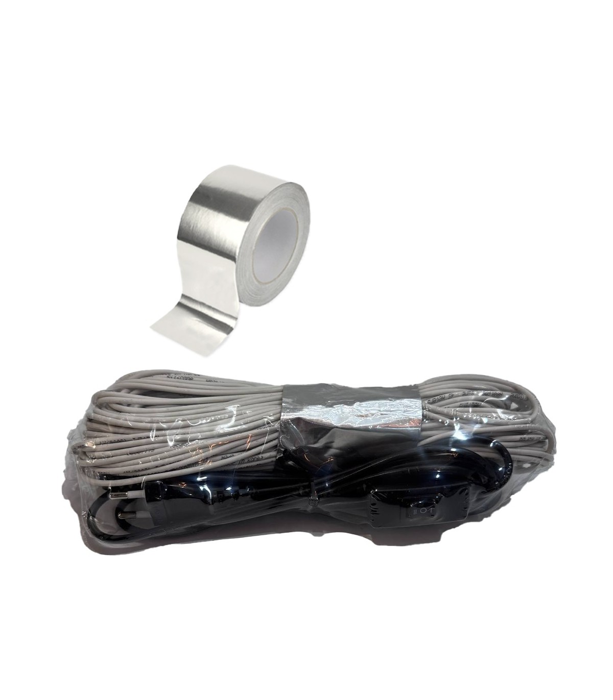با یخ زدگی و ترکیدن لوله های آب بر اثر سرما خداحافظی کن وقتی این محصول رو داری شامل 47 متر المنت و 50 متر چسب آلو منیوم می باشد